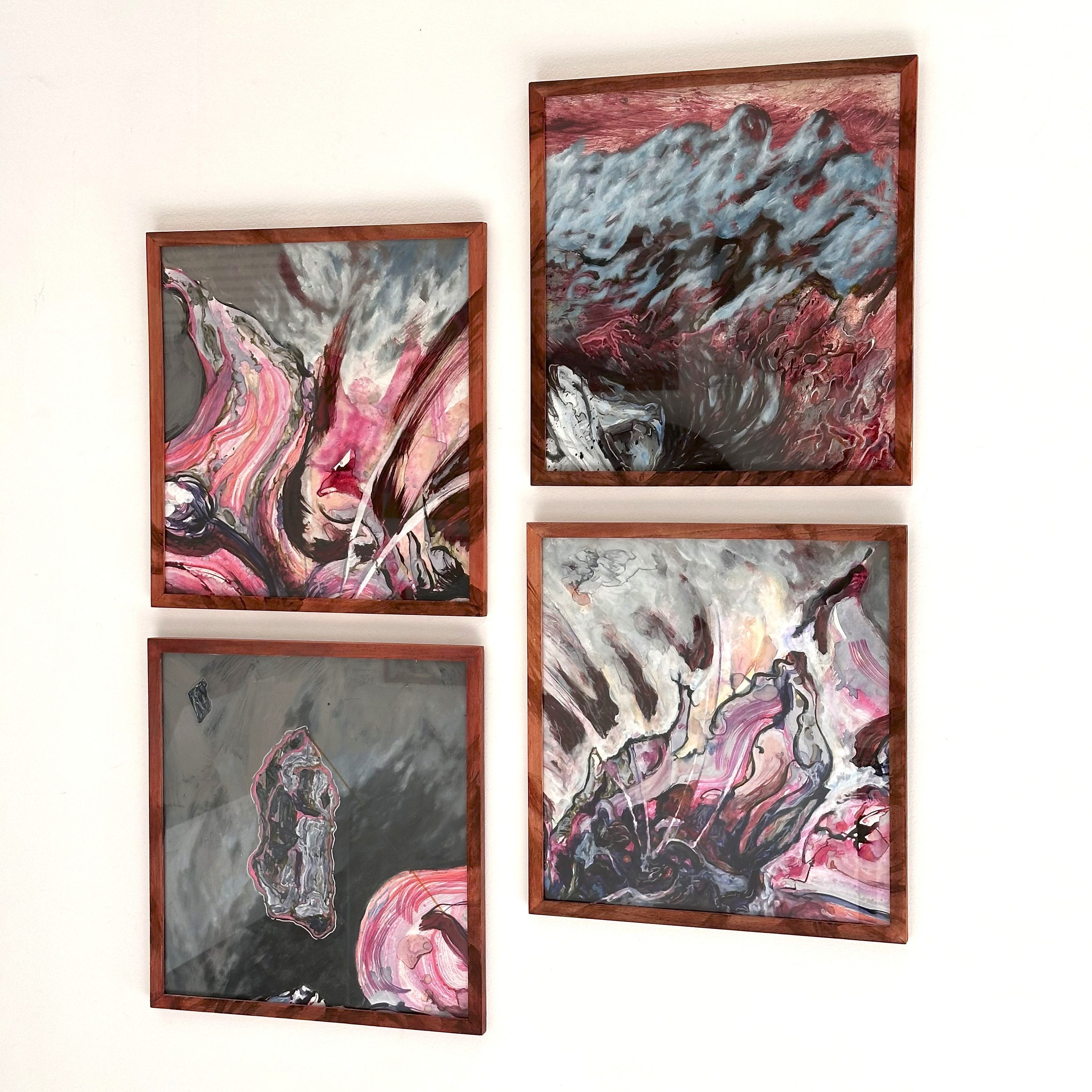 Actualmente explora dos vertientes principales: la pintura con pasteles al óleo sobre base acrílica, donde aparecen imaginarios ligados a formaciones rocosas y figuras humanas; y un trabajo en proceso basado en el ensamblaje de materiales urbanos —mampostería, baldosas, fragmentos de construcción— intervenidos con pintura. En ambas líneas, el eje está puesto en la superficie, la materia y su capacidad de transformación, ya sea desde la memoria geológica o desde la reutilización de restos que abundan en la ciudad.
