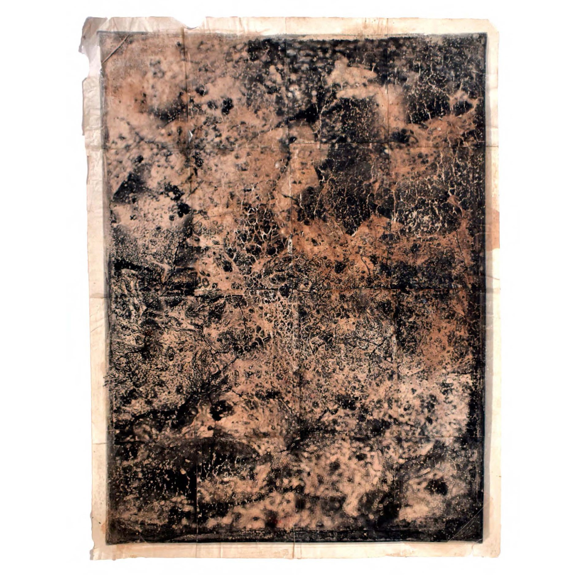 En paralelo, desarrolla collages donde lo tangible y lo intangible se entrelazan en paisajes en movimiento. A partir de revistas y libros antiguos, o incluso de fragmentos de sus propias obras dañadas, construye capas que exploran la tensión entre destrucción y transformación, fondo y figura, vacío y aparición.
