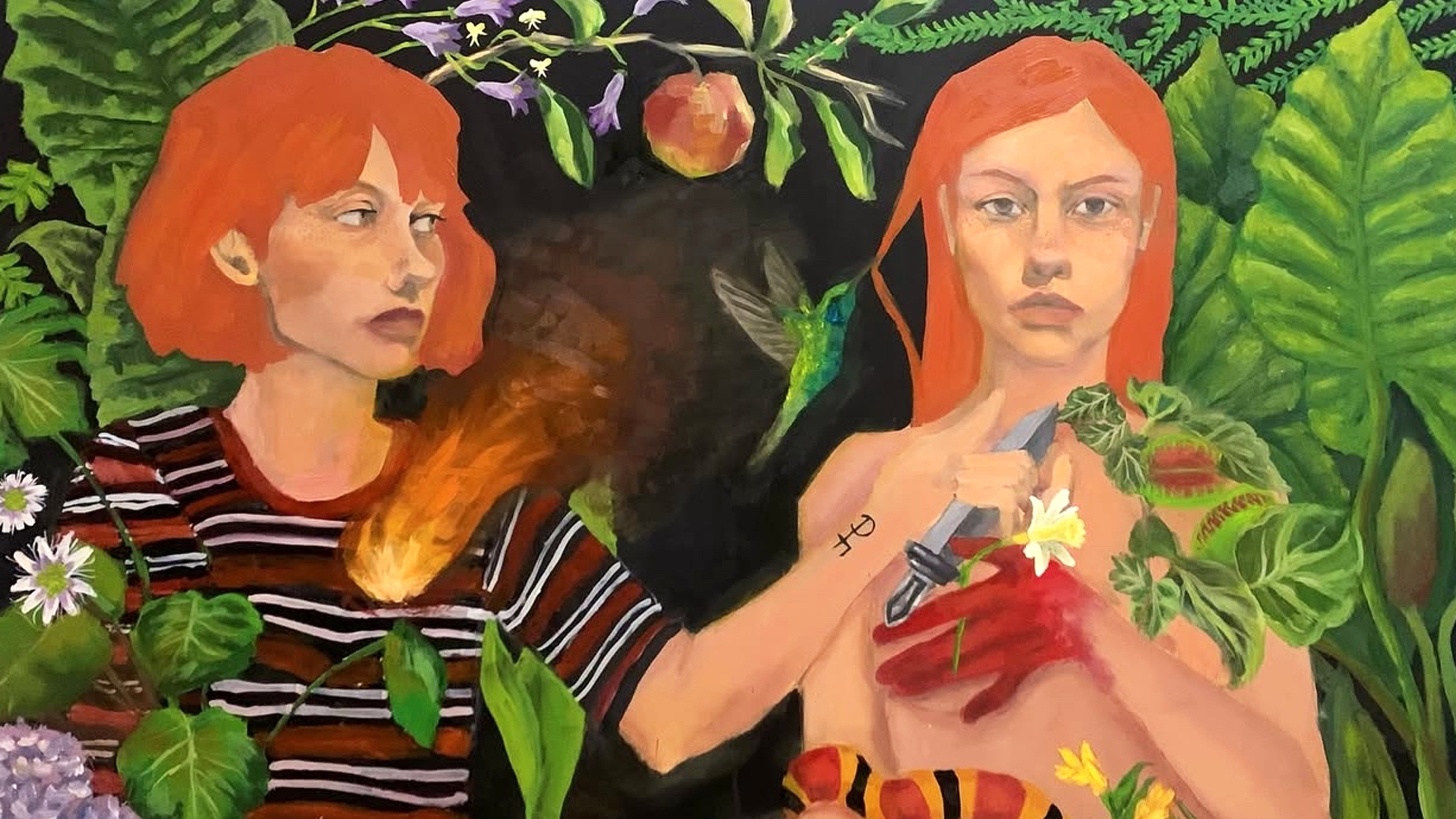 Esta exhibición acompaña el primer gesto individual de la artista como una apertura. Reúne obras de distintos momentos que dialogan entre sí como germen y pulso de una narración en curso. Juntas configuran un territorio donde la pintura es relato y cada escena deja entrever un mundo que se despliega y continúa, cuadro a cuadro, su propio andar.
