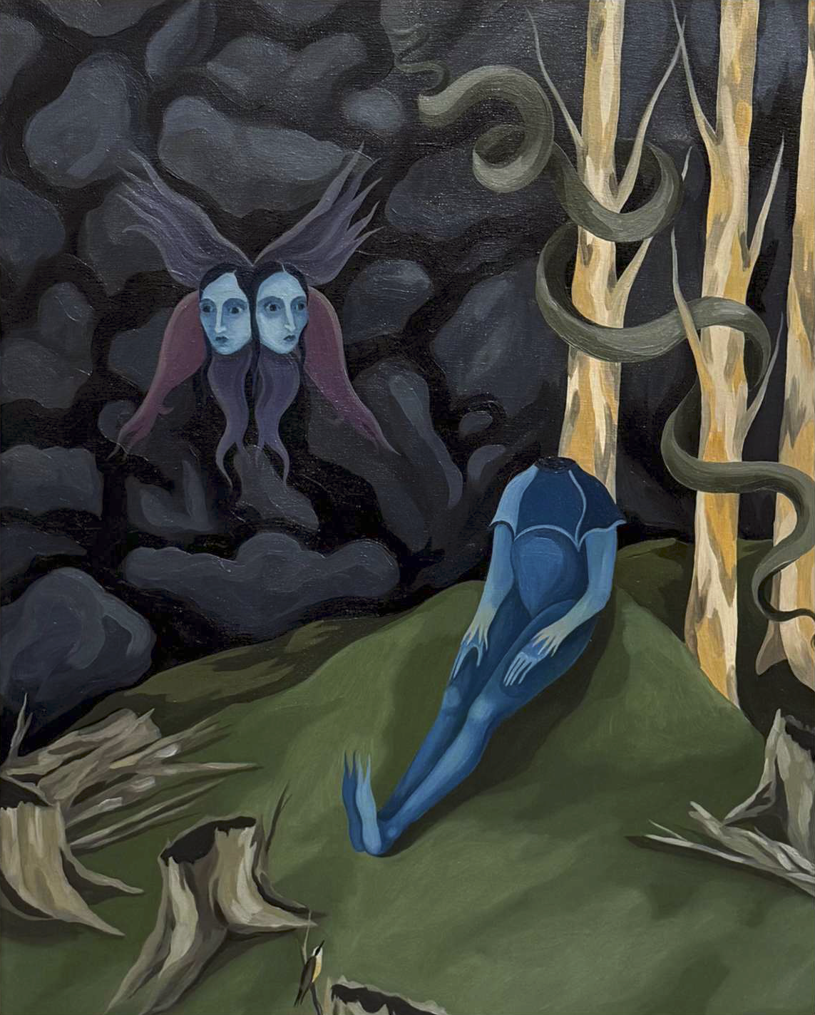 Lucía Eugenia López is a visual artist born in Ituzaingó and trained at the UNA, where she specialized in painting. Her work inhabits a hybrid territory between the mythical and the animal, populated by ambiguous creatures, double presences, and breathing natures. In her paintings and ceramic pieces, the ritual, the fantastic, and the gestural coexist, creating scenes that seem to emerge from a dreamlike forest: bodies that mutate, animals that watch, plants that whisper secrets.